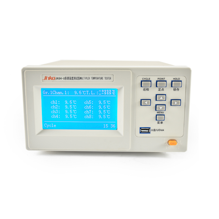 JK-64U多路温度测试仪配备大屏幕液晶显示屏,U盘保存接口,可方便测量显示和保存温度数据,是一种适用于多点同时实时监控跟踪的仪器。