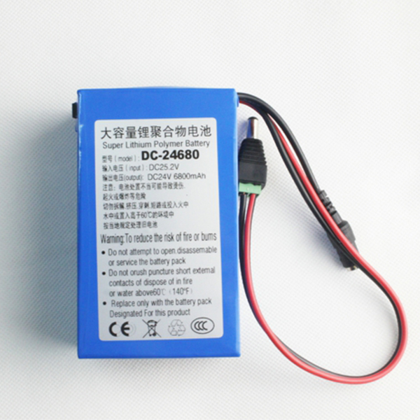 大容量锂聚合物电池 Super Lithium Polyer Battery型号:DC-24680输入电压:DC25.2V输出电压:DC24V 6800mAh 注意:电池处置不当可能造成烫伤,起火,爆炸等危险切勿拆解,挤压、穿刺、短路或投入火中、水中或置入高于60度的环境中