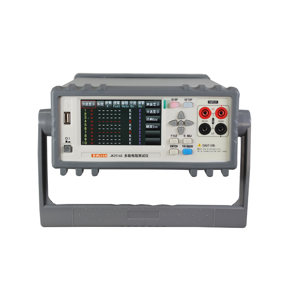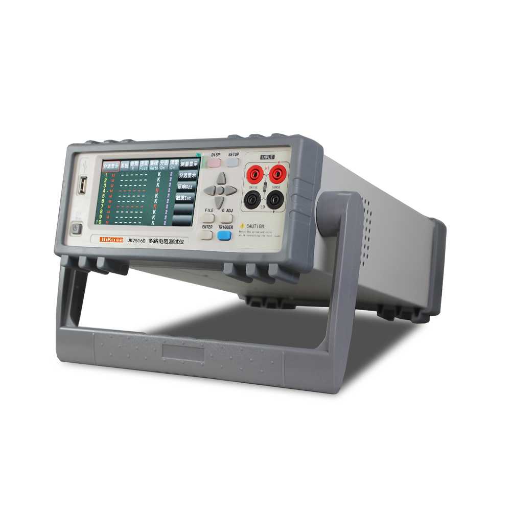 JK2516S系列多路电阻测试仪是针对多个电阻测试而专门设计的高精度宽量程全自动直流电阻测试仪。仪器可同时对20路电阻进行测量,并同时显示在屏幕上。
