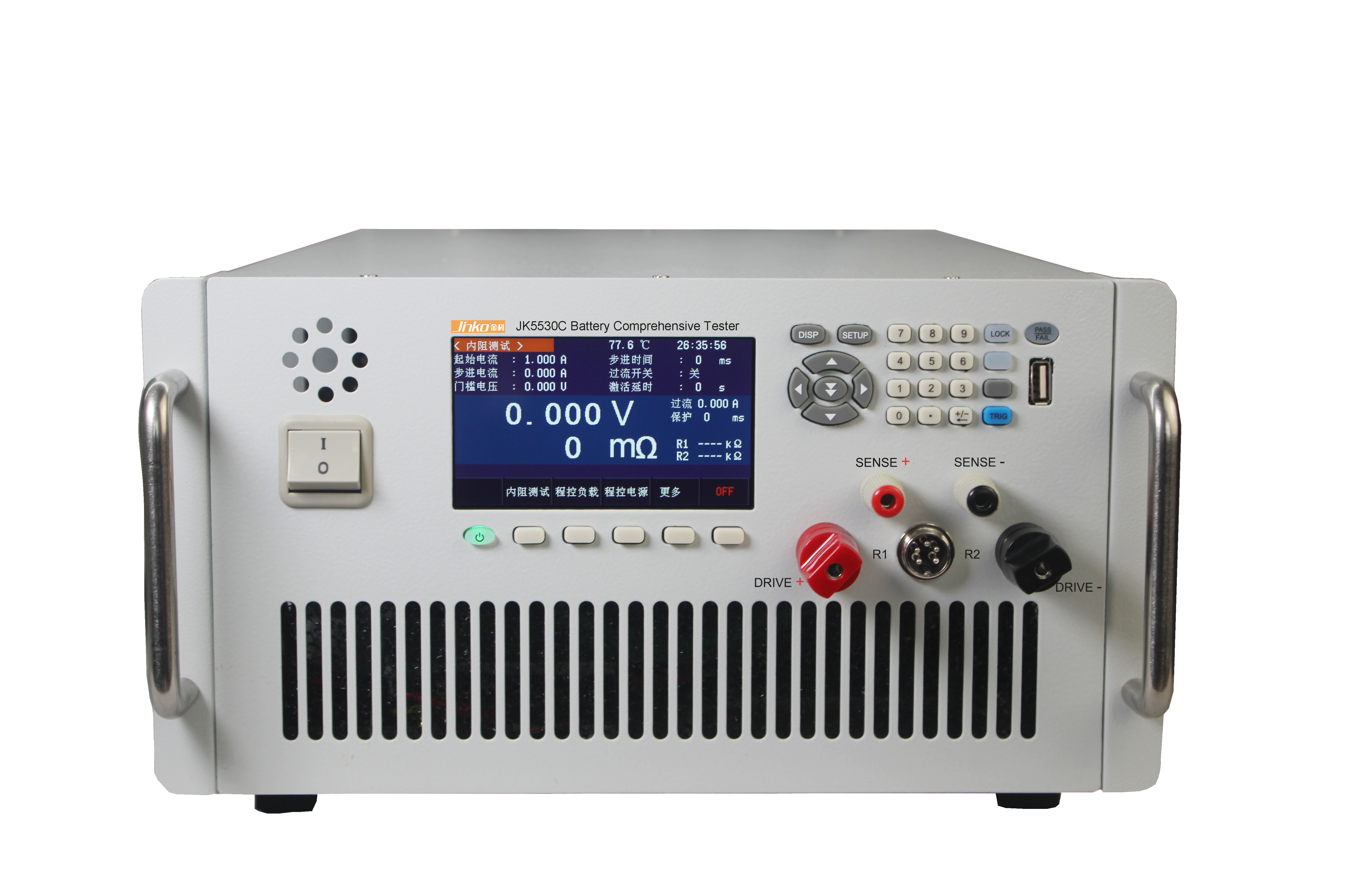 JK5530C电池性能综合测试仪可以测试对大功率电池等多类70V50A以内的锂离子电池、镍氢电池、聚合物电池(组生产厂家;能满足各厂家对高、中、低档电池的生产检测。 检测一块电池的时间不超过1秒;速度快、功能全、精度高;是目前市面上测试最为精准的一类仪器。 广泛适用于各类电池生产厂家;能满足各厂家对高、中、低档电池的生产检测。检测一块电池的时间不超过1秒;速度快、功能全、精度高;是目前市面上测试最为精准的一类仪器。针对可充电电池的生产检测需要宏大特研制了专用的可充电池综合检测仪,可以对电池的一些基本参数做一个定量的精确的测量,可以测量电池的开路电压,内阻,充电,放电性能,电池容量特别针对锂电池的功能还有过充电保护,过放电保护,过电流保护,短路保护等功能,并测出过相应的数值,极大的方便了电池的生产和售前售后服务工作,采用非常简单的几个步骤就可以直观的判断电池的性能和好坏,同时也具有快速筛选的功能,可以设定测量参数的上限和下限,可以容易的从一批电池成品中快速检测出不良电池,提高了生产效率