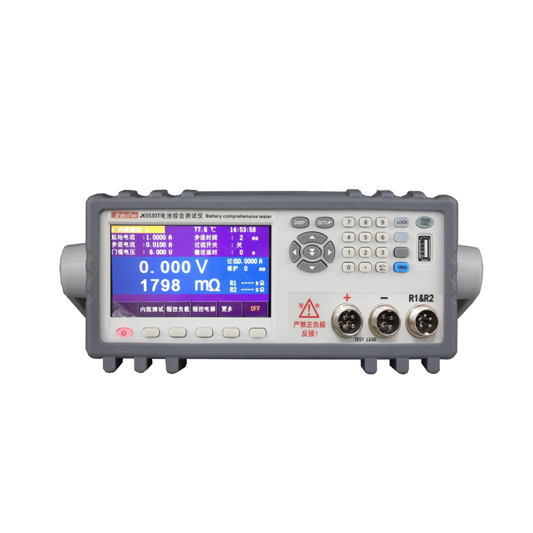 JK5530T电池性能综合测试仪可以测试对讲机电池、手机电池等多类10V20A以内的锂离子电池、镍氢电池、聚合物电池(组),如:、MP3/4电池、数码电池、双串电池组、手机电池等;此检测设备广泛适用于对讲机电池、手机电池、数码电池等各类电池生产厂家;能满足各厂家对高、中、低档电池的生产检测。 检测一块电池的时间不超过1秒;速度快、功能全、精度高;是目前市面上测试最为精准的一类仪器。