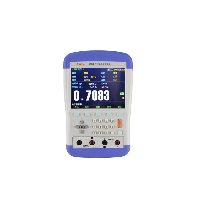 JK628/629手持直流低电阻测试仪是一种高精度宽量程,采用高性能32位ARM微处理器控制的便携手持仪器,内置大容量锂电池在任何场合可长时间实现对无源元件进行精确而便捷的测量。配置5.6"高清彩色液晶显示屏,大字体显示更方便您读取数据。 仪器可以测试0.1μΩ~200MΩ的电阻,最大显示数20000数。它有的电流测试模式可以适应不同要求的测试。并配备Mini-USB通讯接口,用于远程控制和数据采集与分析。JK628/629手持低电阻测试仪可测量各种高、中、低值电阻器。广泛应用于各种开关接触电阻;接插件接插电阻;继电器线包和触电电阻;变压器、电感器、电机、偏转线圈绕线电阻;导线电阻;车、船、飞机的金属铆接电阻、印制板线条和孔化电阻等。